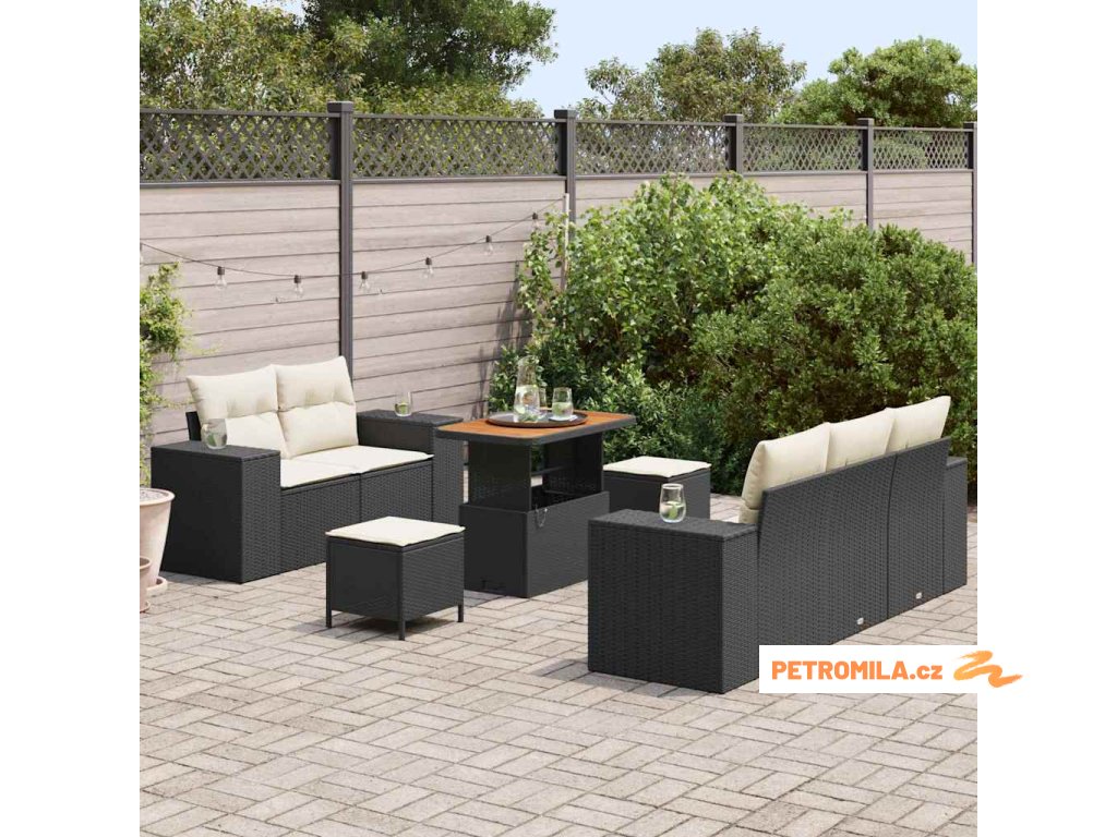 11dílná zahradní sedací souprava s poduškami černá polyratan