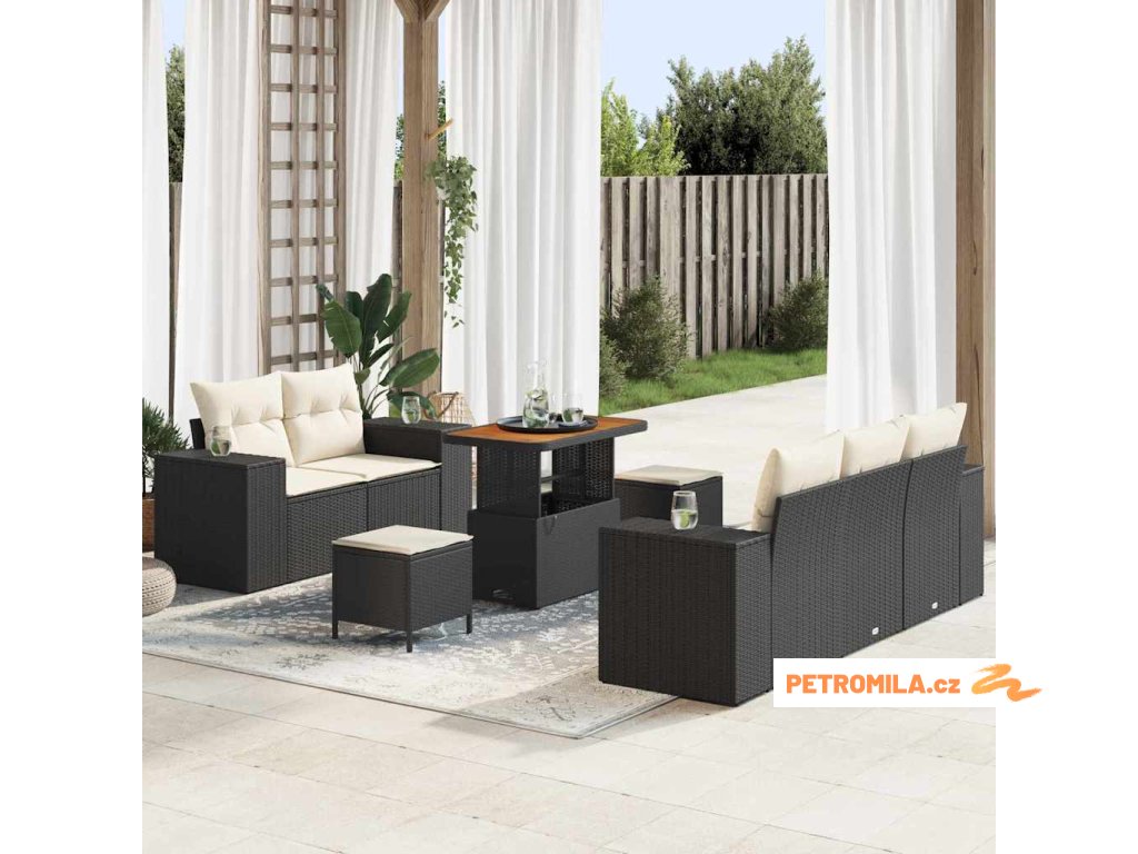 Sada zahradních pohovek 9 pcs Černá polyratan