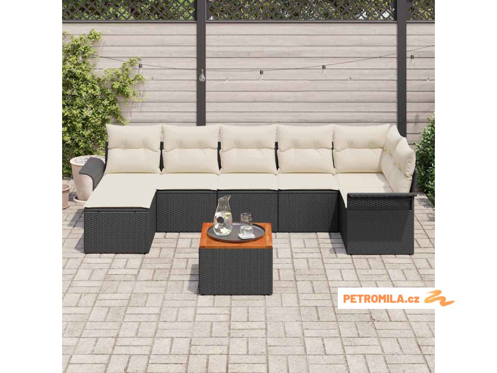 Sada zahradních pohovek s polštářem 8 pcs Černá polyratan