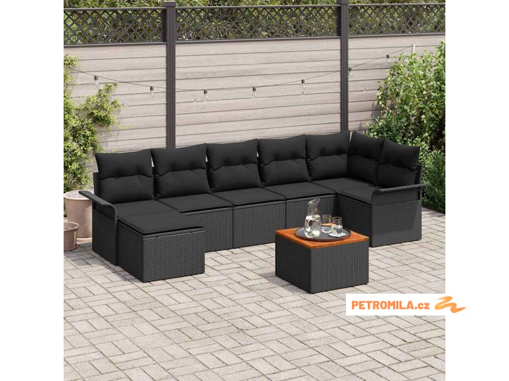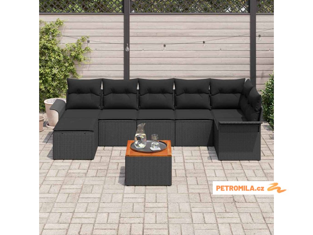 Sada zahradních pohovek s polštářem 8 pcs Černá polyratan