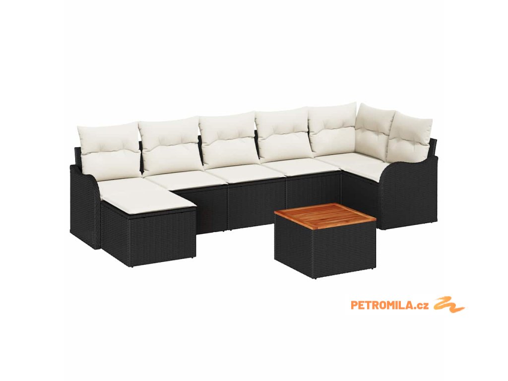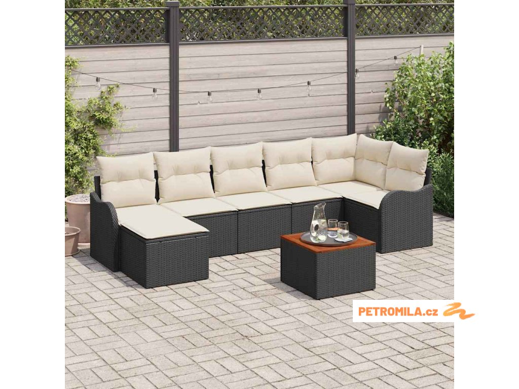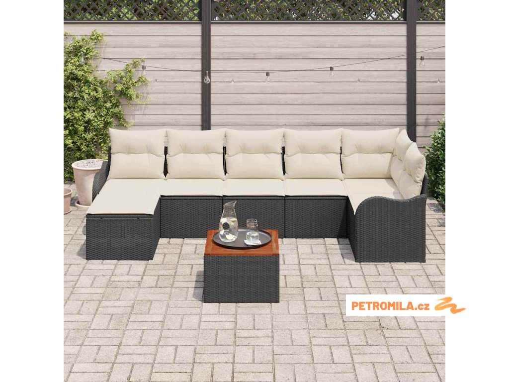 Sada zahradních pohovek s polštářem 8 pcs Černá polyratan