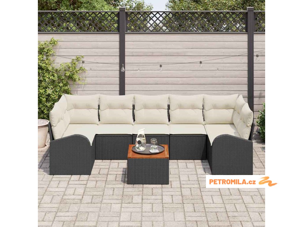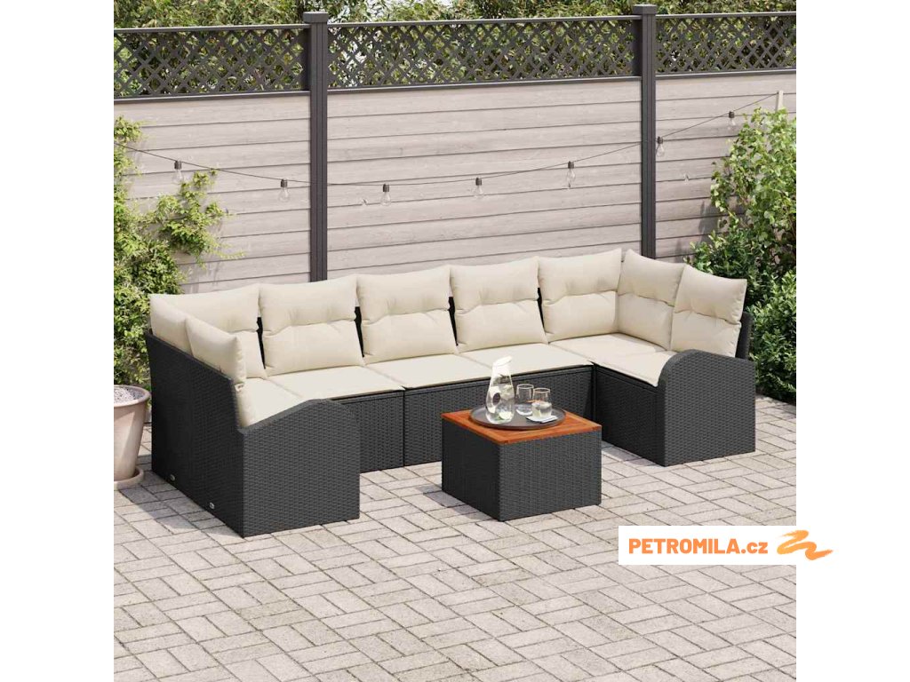 Sada zahradních pohovek s polštářem 8 pcs Černá polyratan