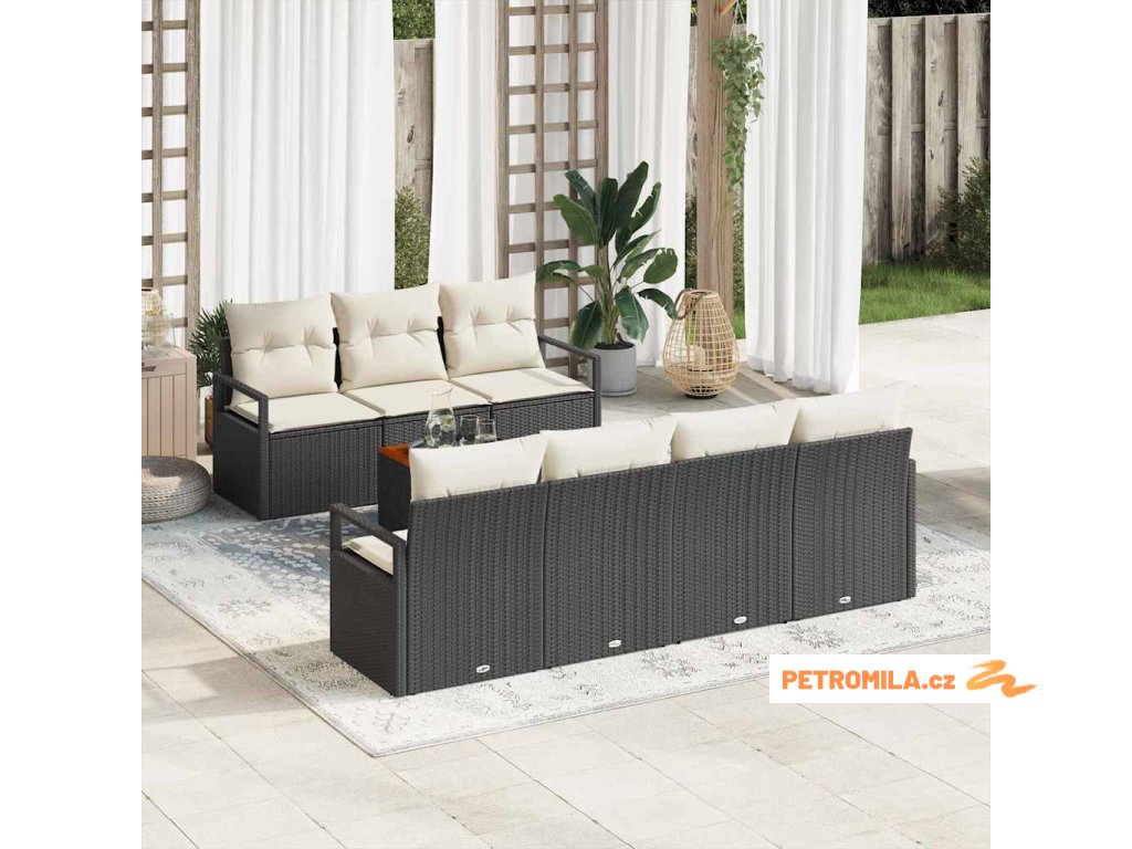 Sada zahradních pohovek s polštářem 8 pcs Černá polyratan