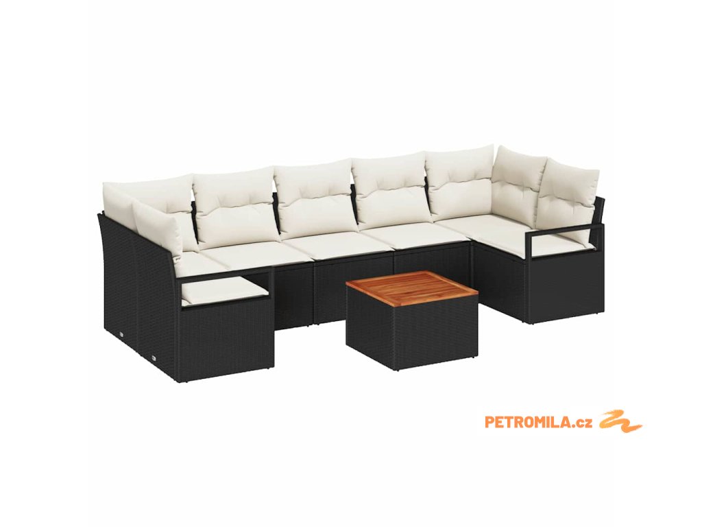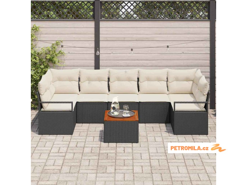 Sada zahradních pohovek s polštářem 8 pcs Černá polyratan