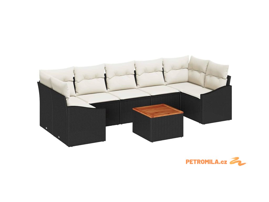 Sada zahradních pohovek s polštářem 8 pcs Černá polyratan