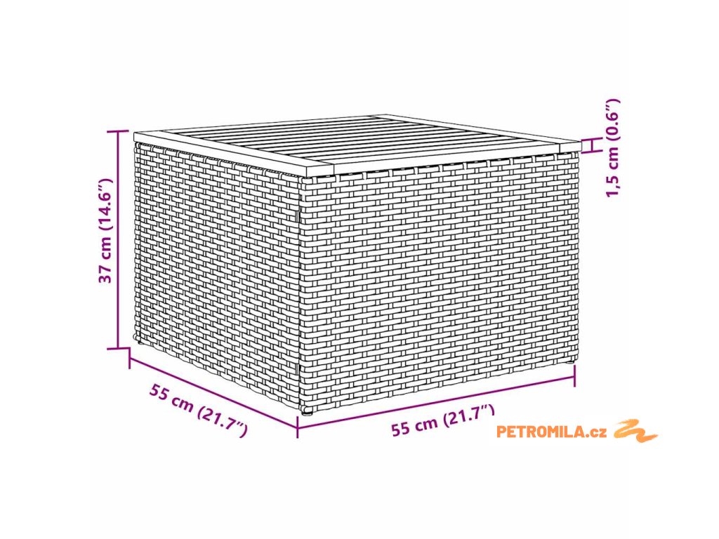 - 1 x zahradní stůl: 55 x 55 x 37 cm (D x Š x V)