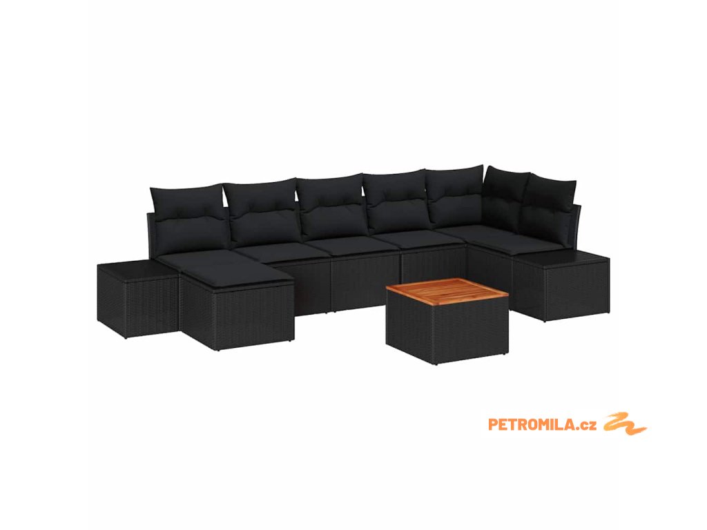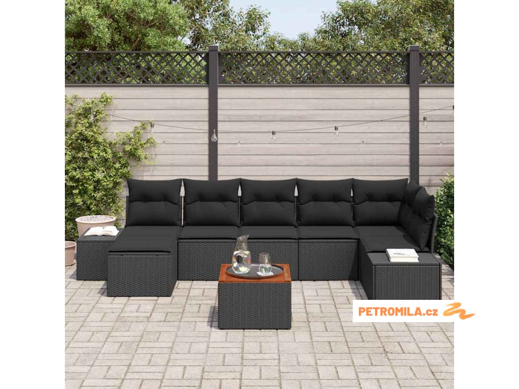Sada zahradních pohovek s polštářem 8 pcs Černá polyratan
