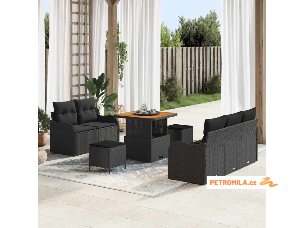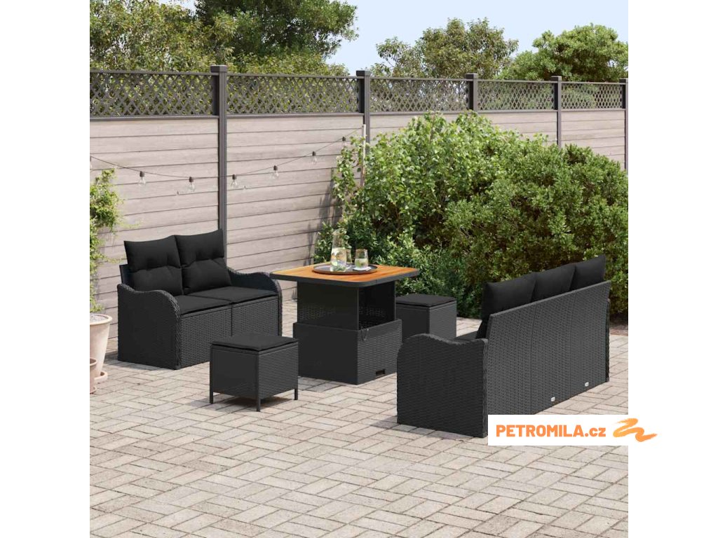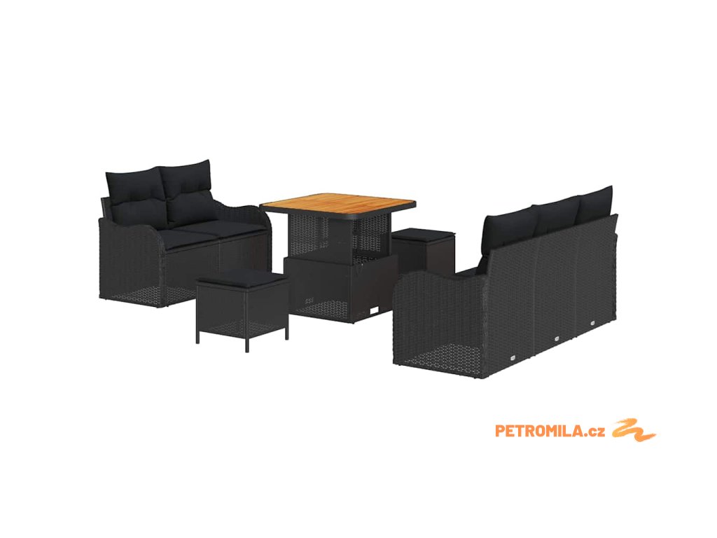 Sada zahradních pohovek s polštářem 8 pcs Černá polyratan
