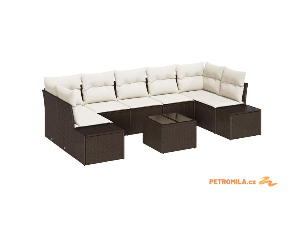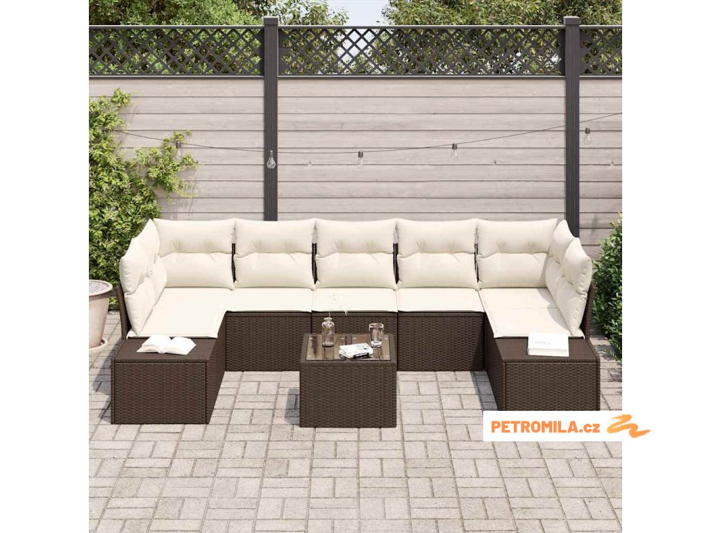 Sada zahradních pohovek s polštářem 8 pcs Hnědá polyratan