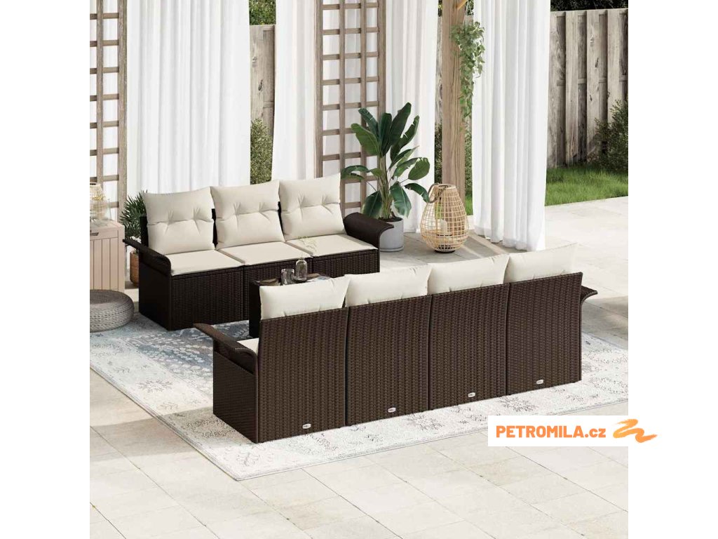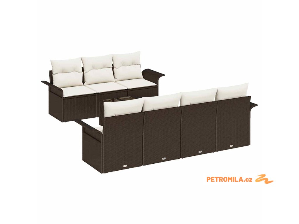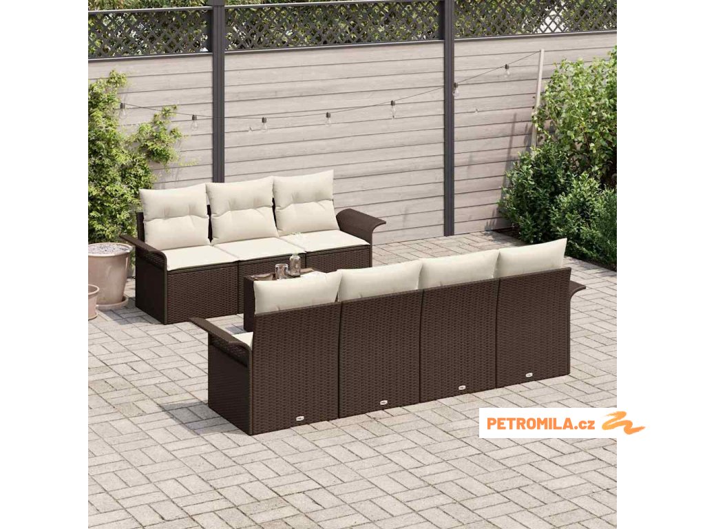 Sada zahradních pohovek s polštářem 8 pcs Hnědá polyratan