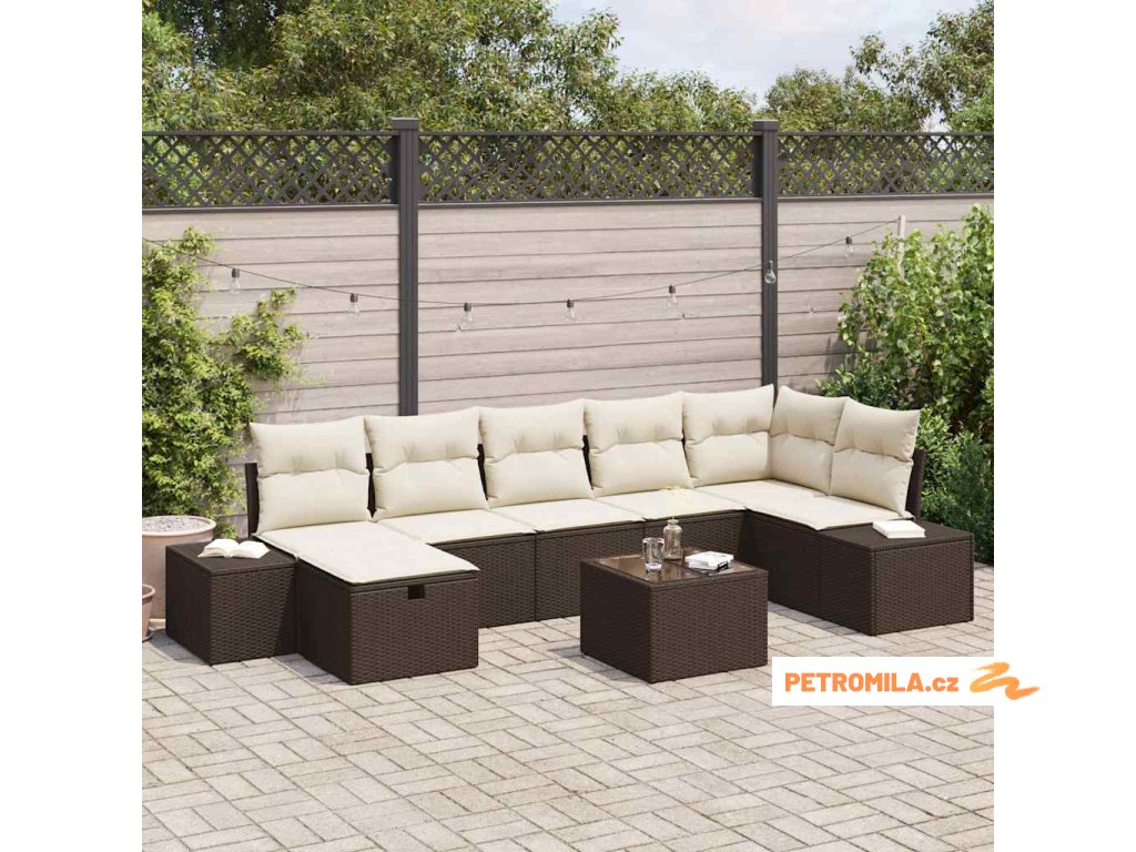 Sada zahradních pohovek s polštářem 8 pcs Hnědá polyratan