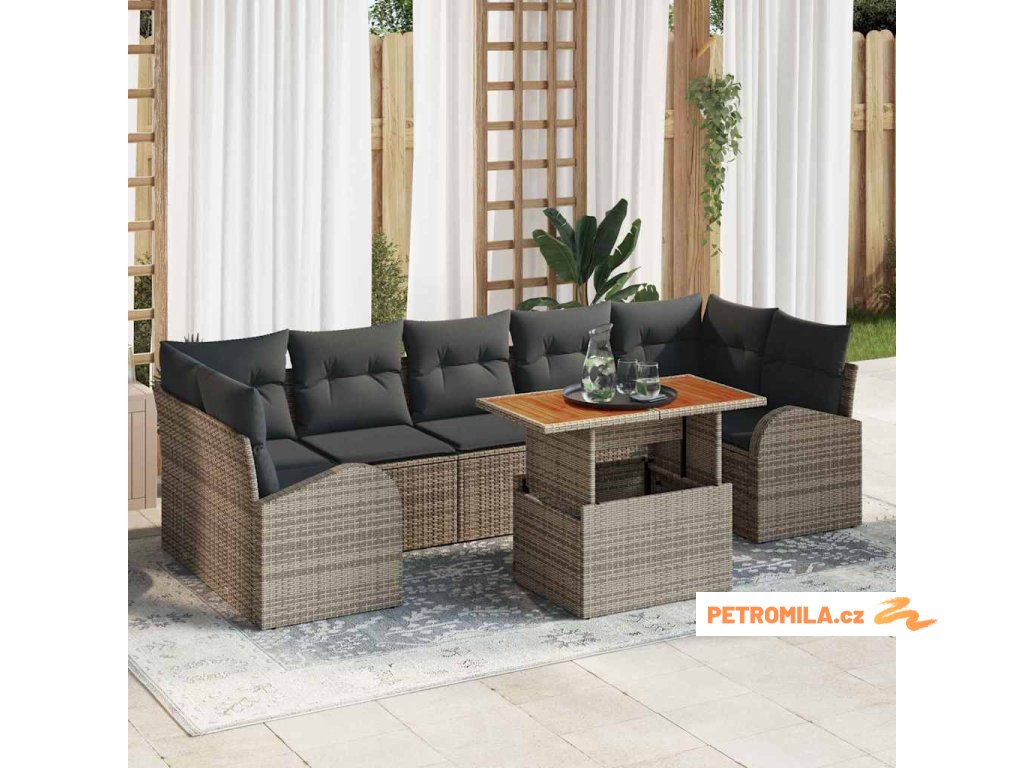 Sada zahradních pohovek s polštářem 8 pcs Šedá