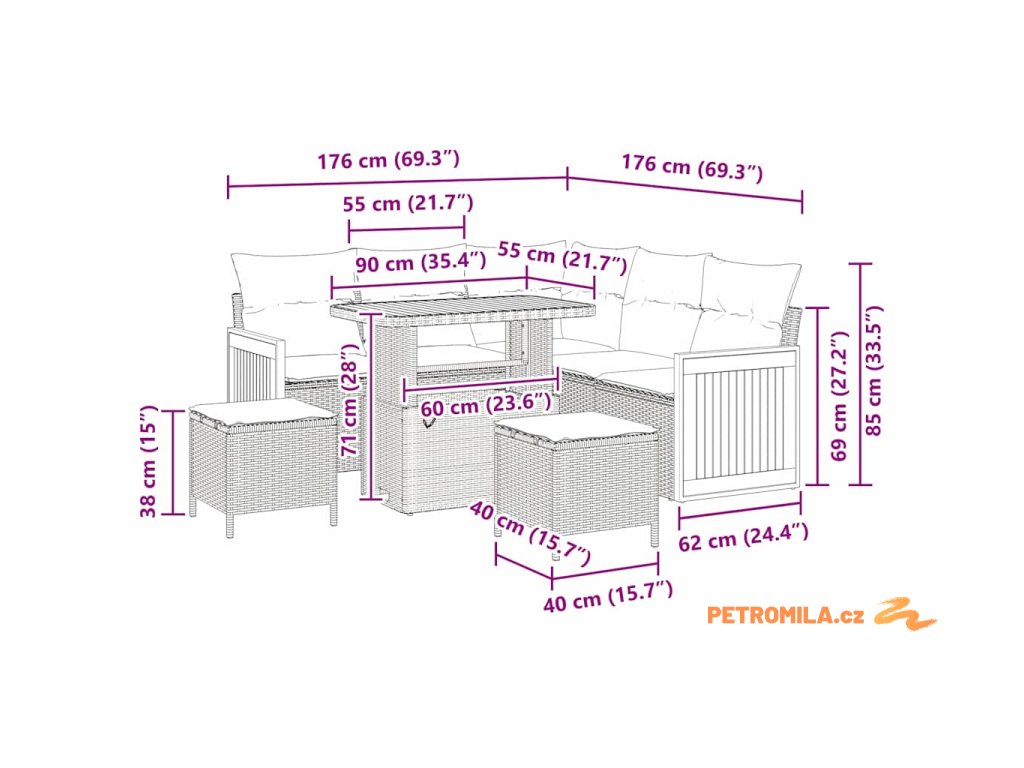 - Odolná Konstrukce: Sada gauče má silný rám z práškově lakované oceli, který zajišťuje stabilitu a dlouhověkost a přitom dobře vypadá. Kvalitní poly ratan dává hezkou a UV-odolnou texturu, která snese venkovní podmínky bez blednutí.