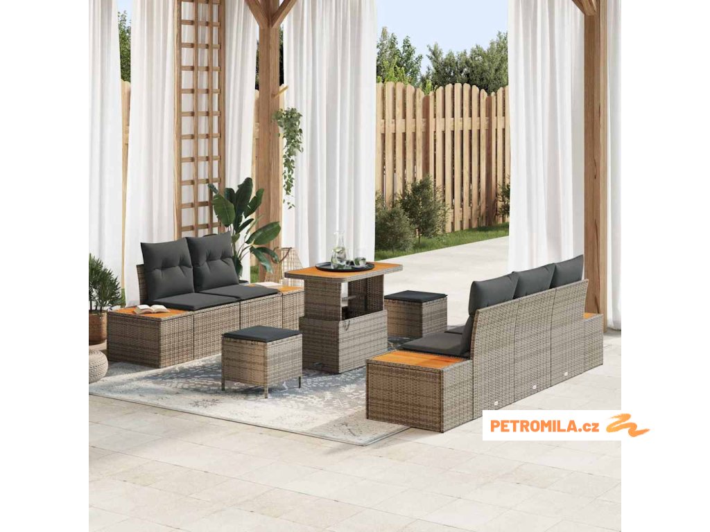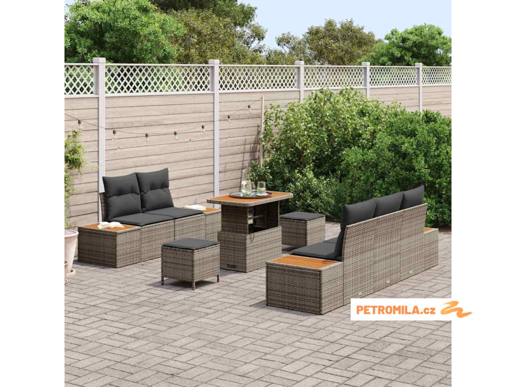 Sada zahradních pohovek s polštářem 8 pcs Šedá Poly ratan