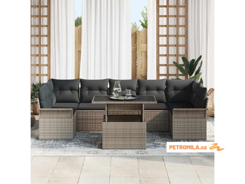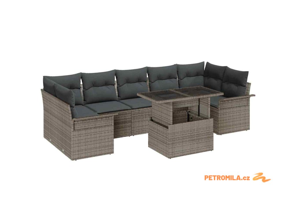 Sada zahradních pohovek s polštářem 8 pcs Šedá Poly ratan