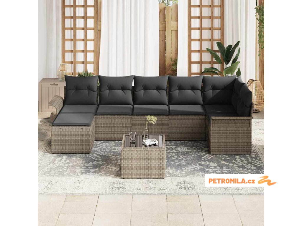 Sada zahradních pohovek s polštářem 8 pcs Šedá Poly ratan