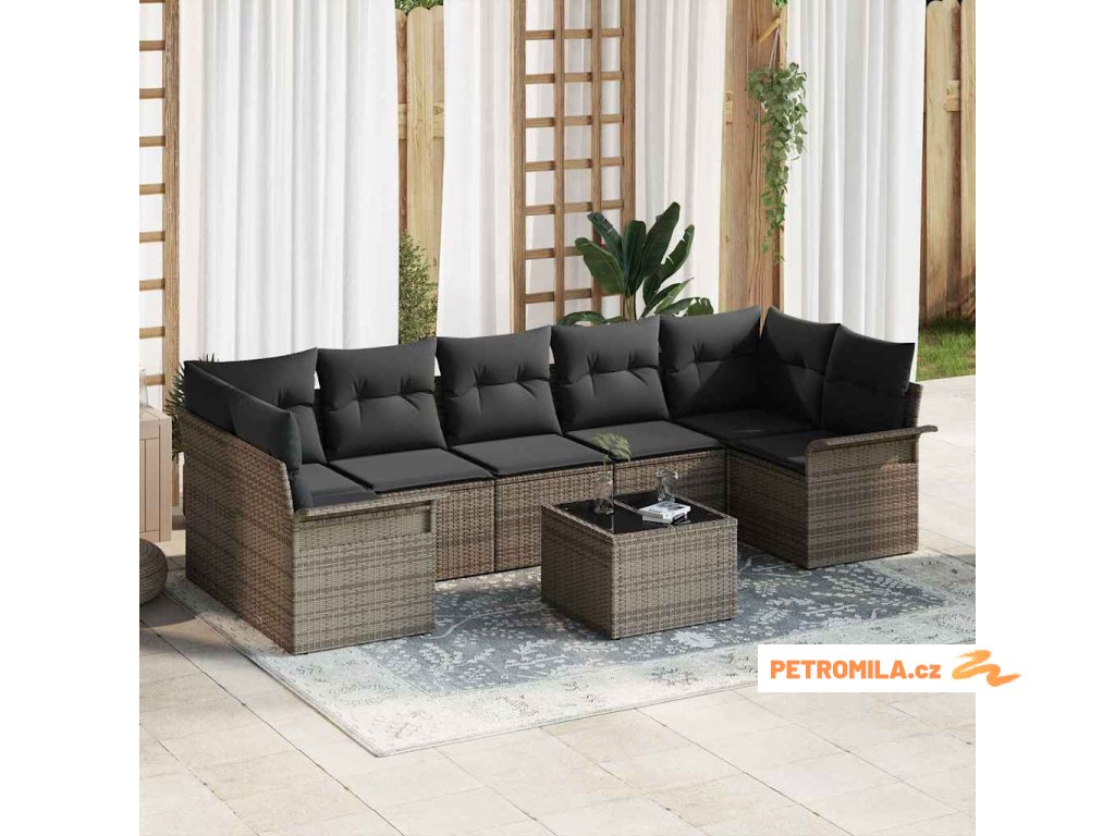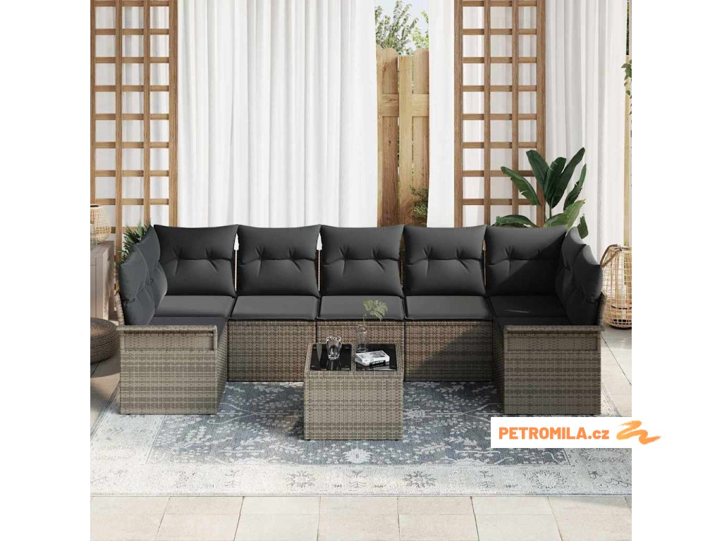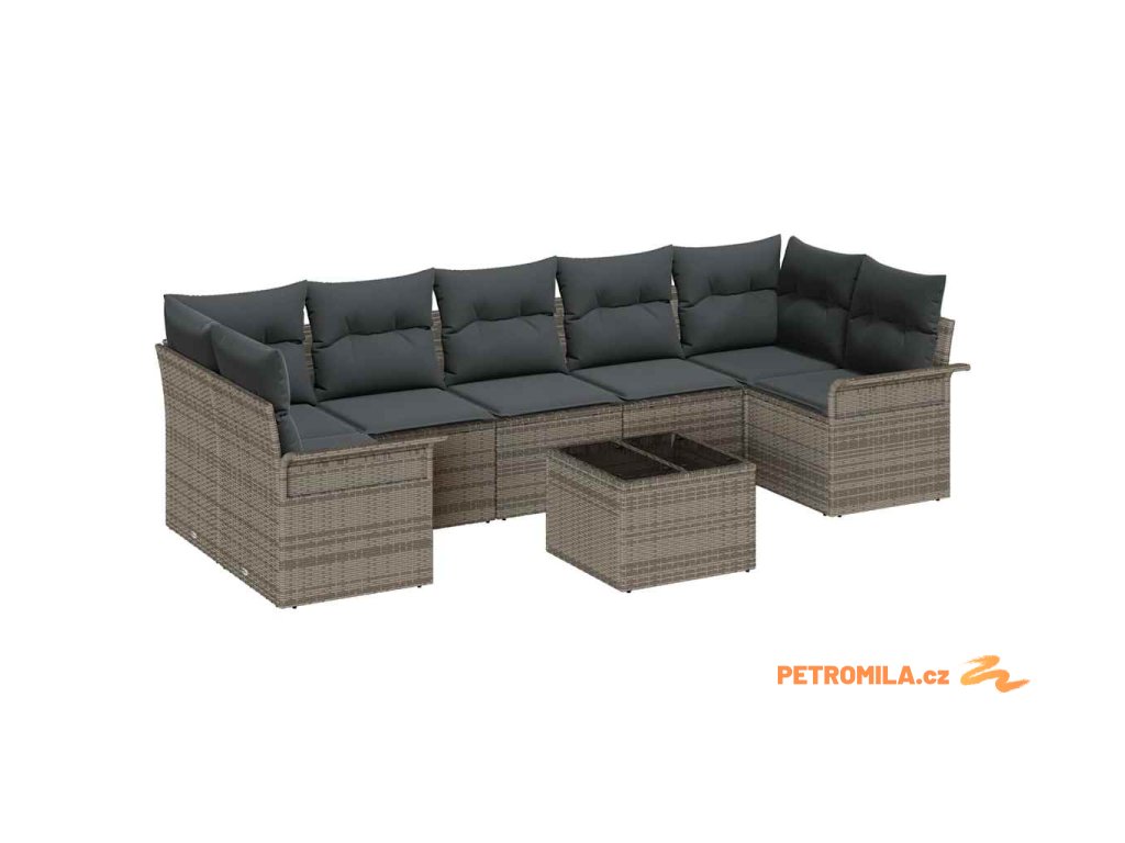 Sada zahradních pohovek s polštářem 8 pcs Šedá polyratan