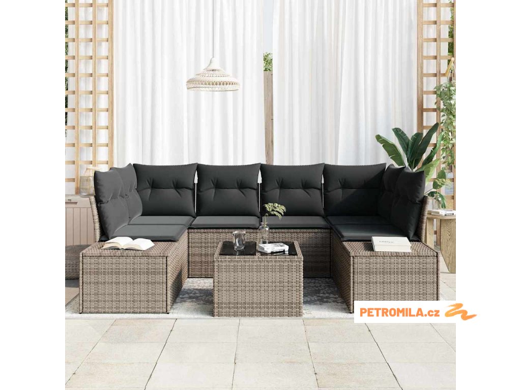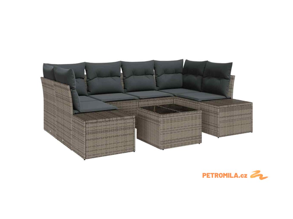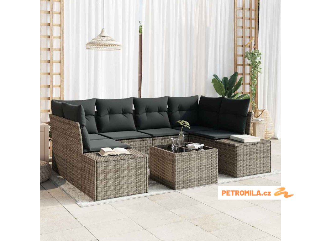Sada zahradních pohovek s polštářem 8 pcs Šedá polyratan