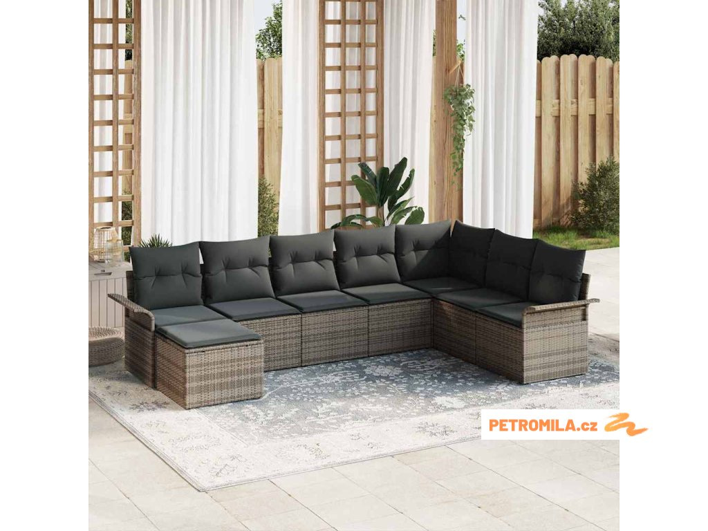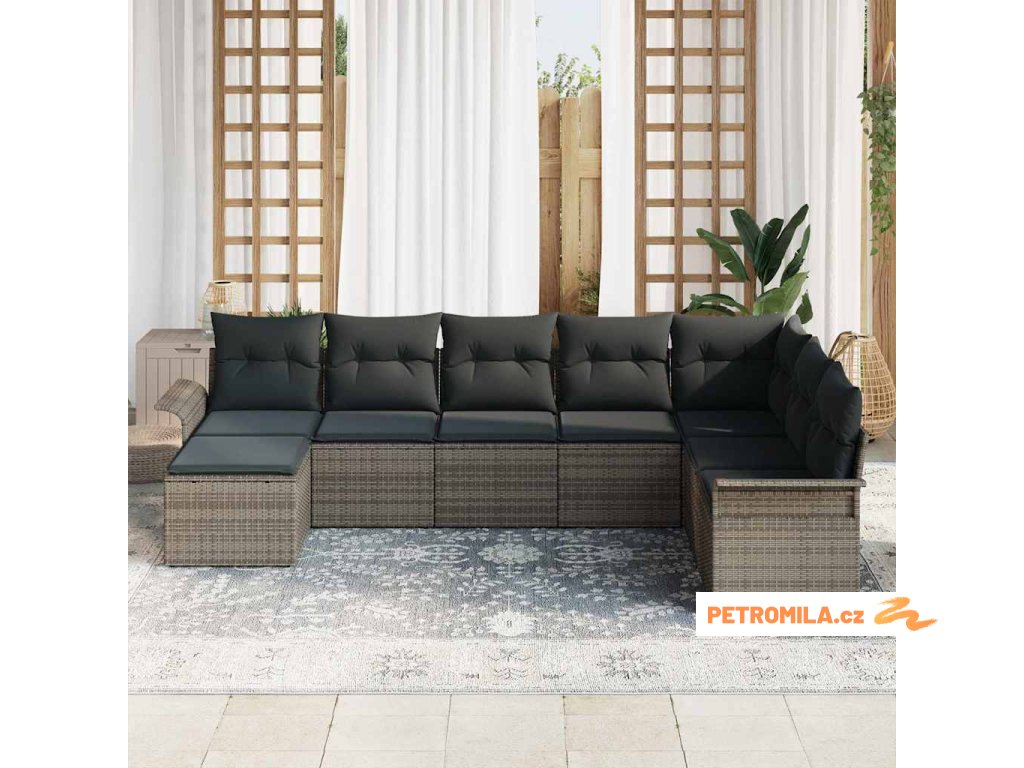 Sada zahradních pohovek s polštářem 8 pcs Šedá polyratan