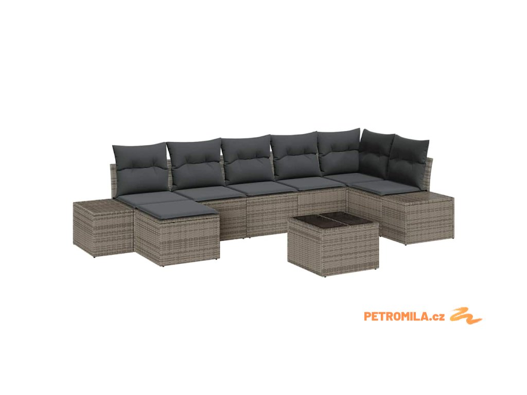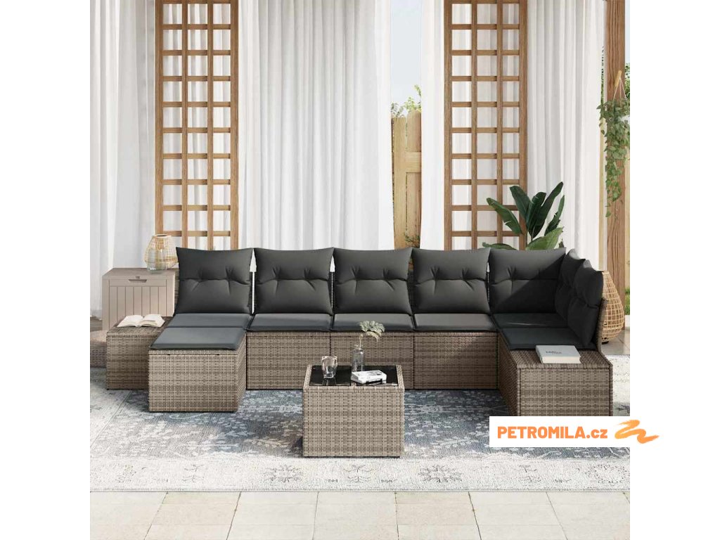 Sada zahradních pohovek s polštářem 8 pcs Šedá Poly ratan