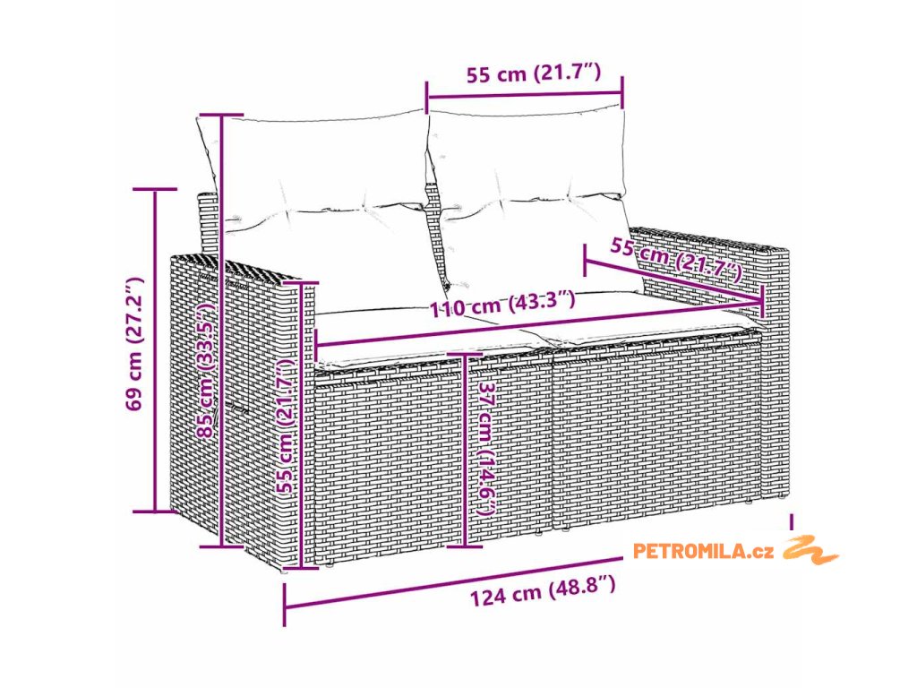 - 1 x Střední sedadlo: 55 x 62 x 85 cm (ŠxHxV)