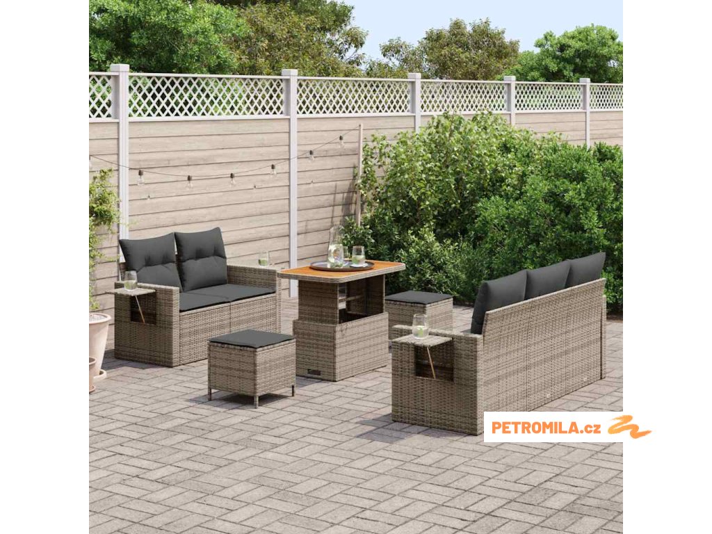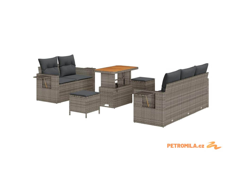 Sada zahradních pohovek s polštářem 8 pcs Šedá polyratan