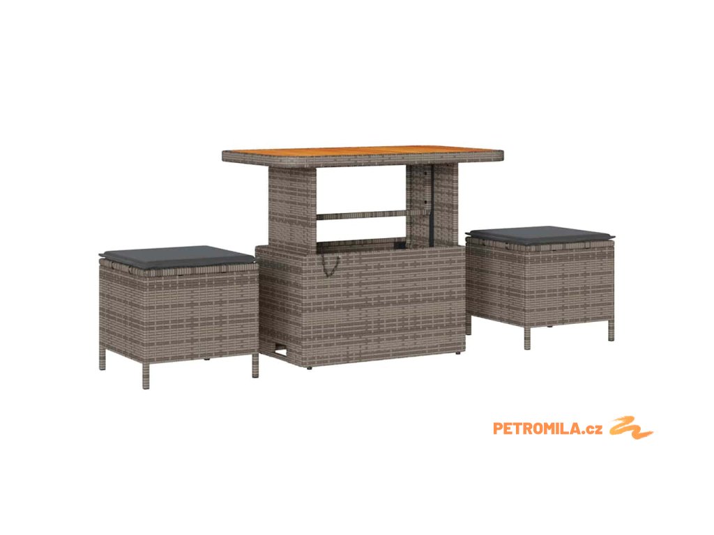 - Nastavitelné designové funkce: Sada obsahuje stůl s nastavitelnou výškou, který se snadno mění z kávového stolu na jídelní. Tato přizpůsobitelnost dělá sadu skvělou pro různé příležitosti, od odpoledních čajů po večerní grilování.