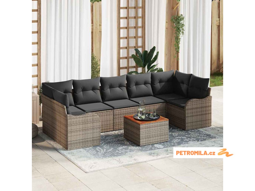 Sada zahradních pohovek s polštářem 8 pcs Šedá polyratan