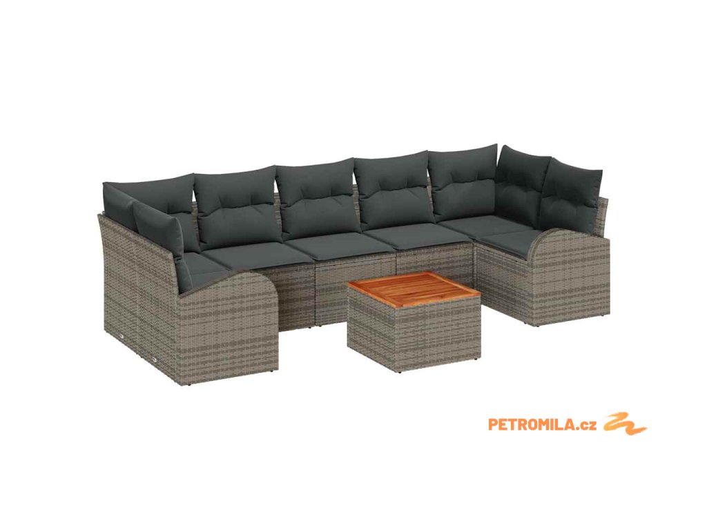 Sada zahradních pohovek s polštářem 8 pcs Šedá polyratan