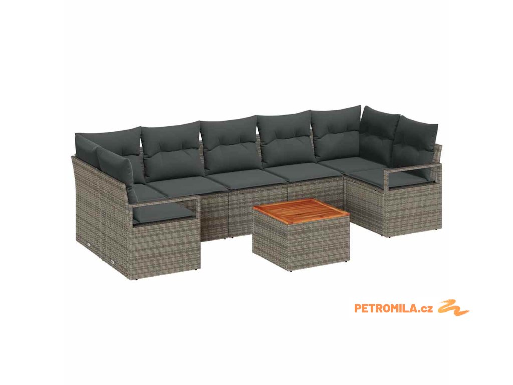 Sada zahradních pohovek s polštářem 8 pcs Šedá polyratan