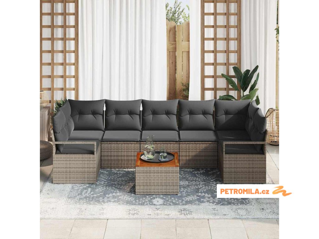 9dílná zahradní sedací souprava a podušky světle šedá polyratan