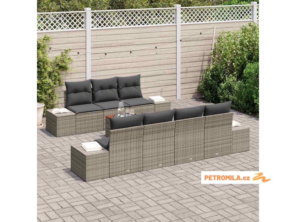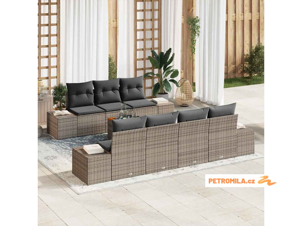Sada zahradních pohovek s polštářem 8 pcs Šedá polyratan