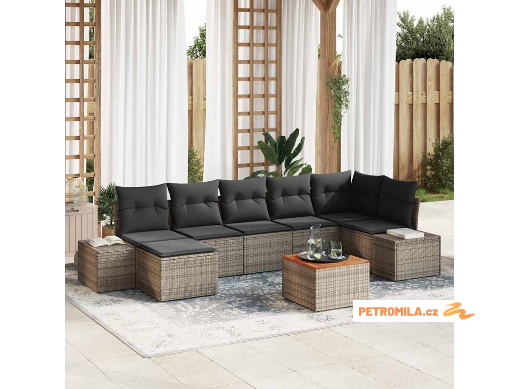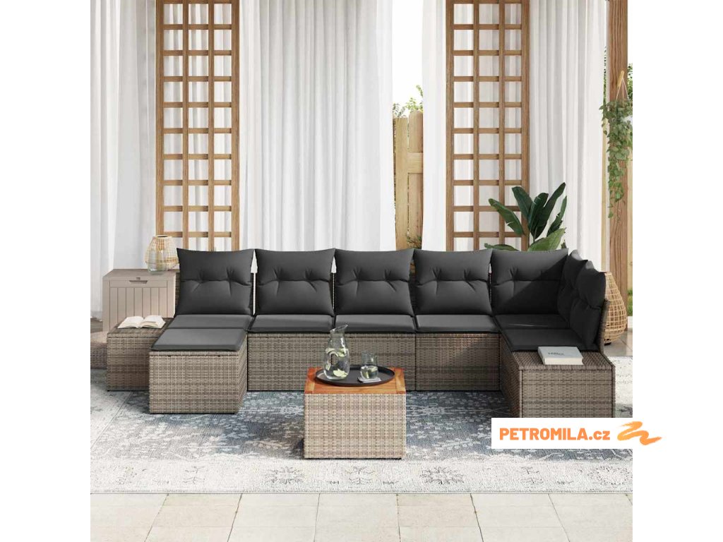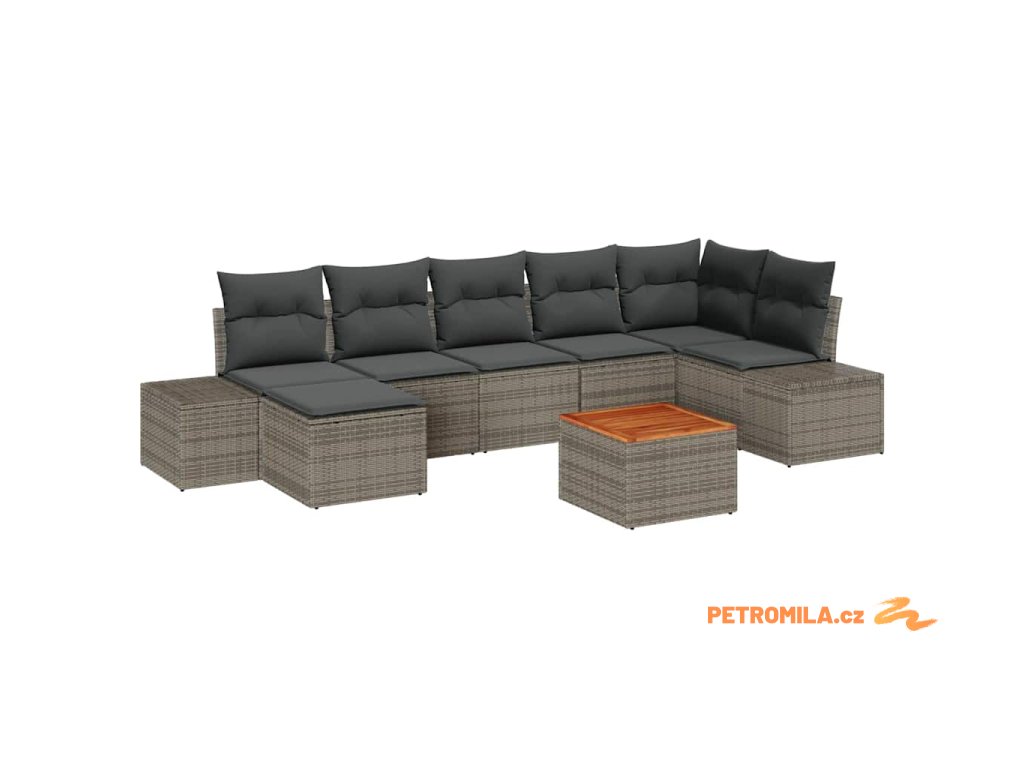 Sada zahradních pohovek s polštářem 8 pcs Šedá polyratan