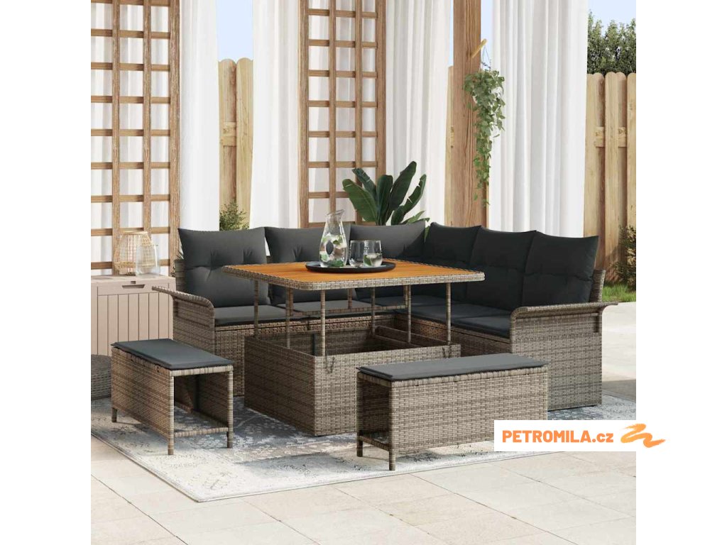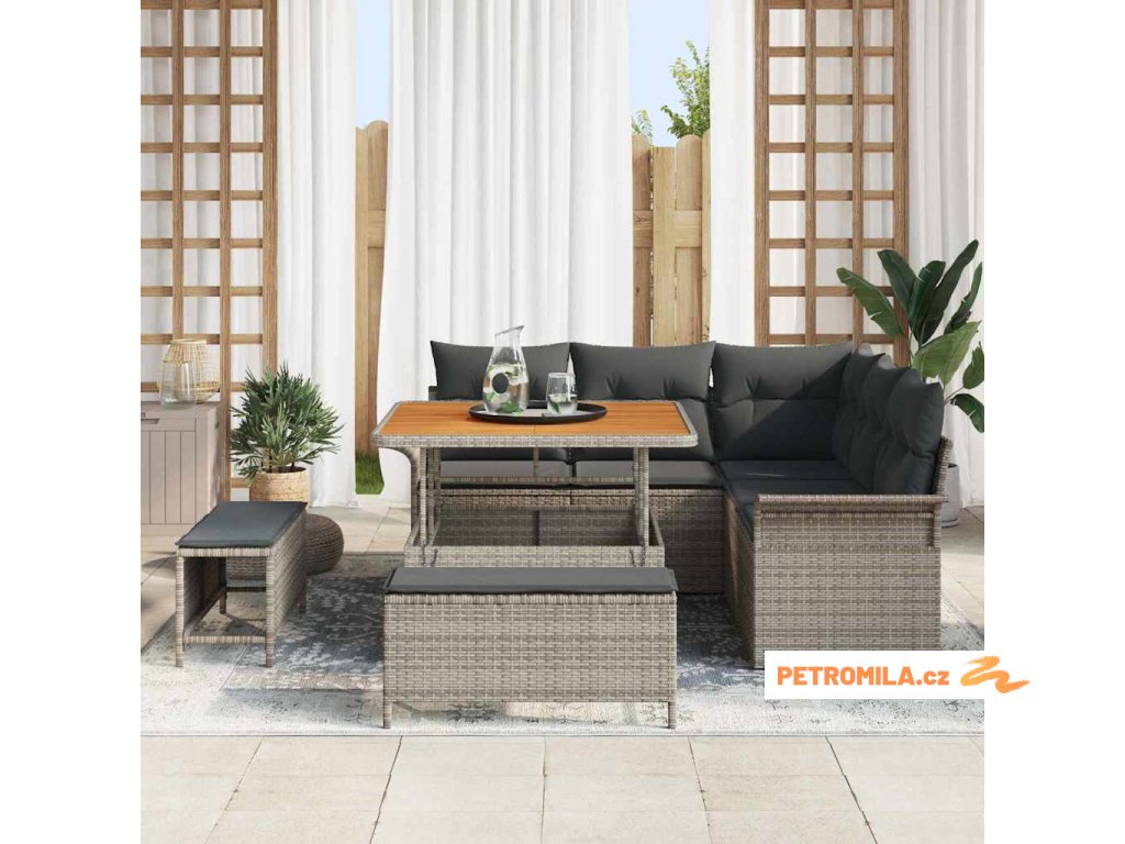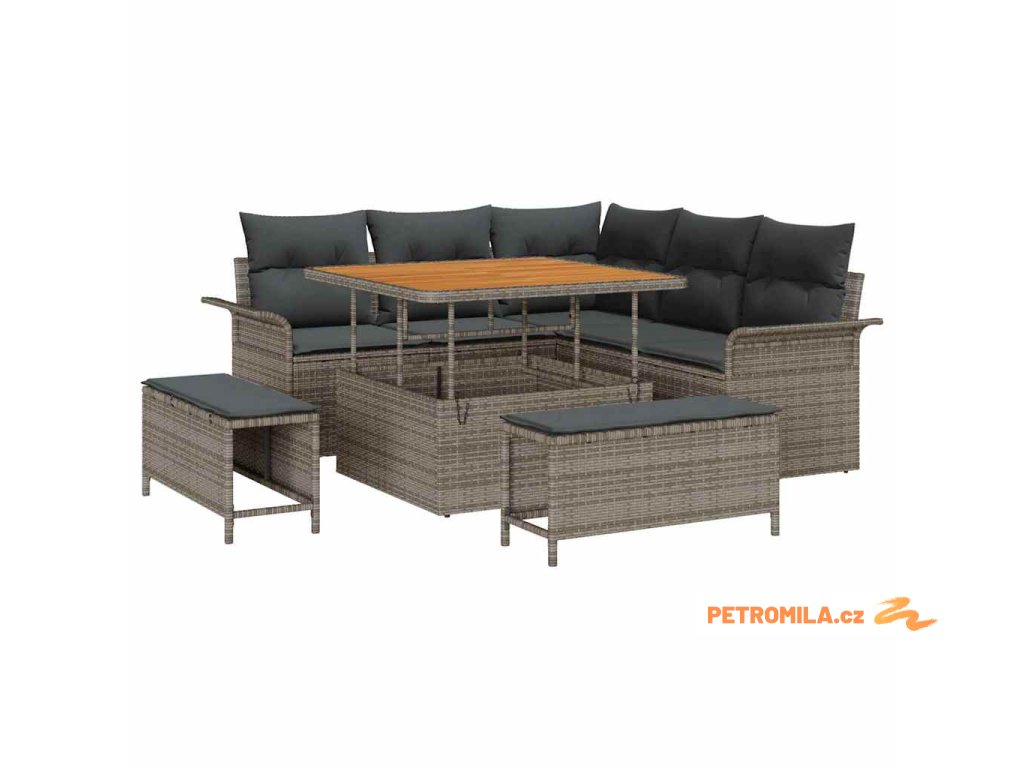 Sada zahradních pohovek s polštářem 8 pcs Šedá polyratan