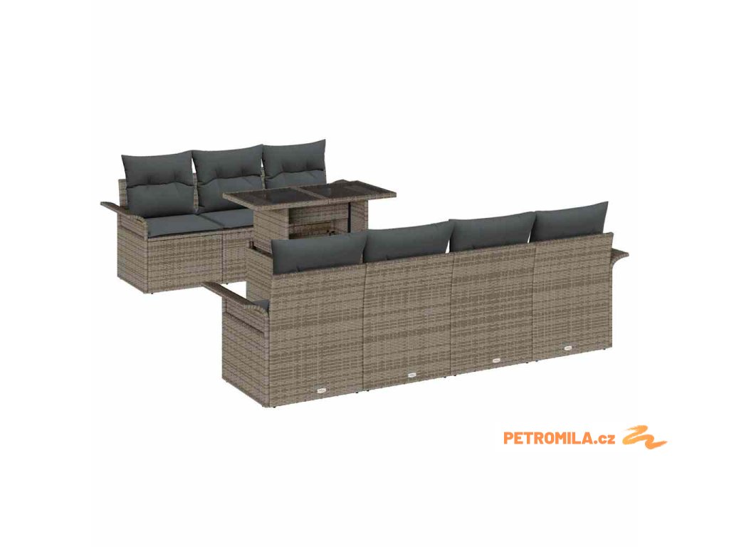 Sada zahradních pohovek s polštářem 8 pcs Šedá polyratan