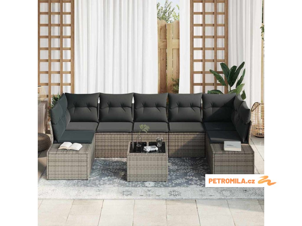 Sada zahradních pohovek s polštářem 8 pcs Šedá polyratan