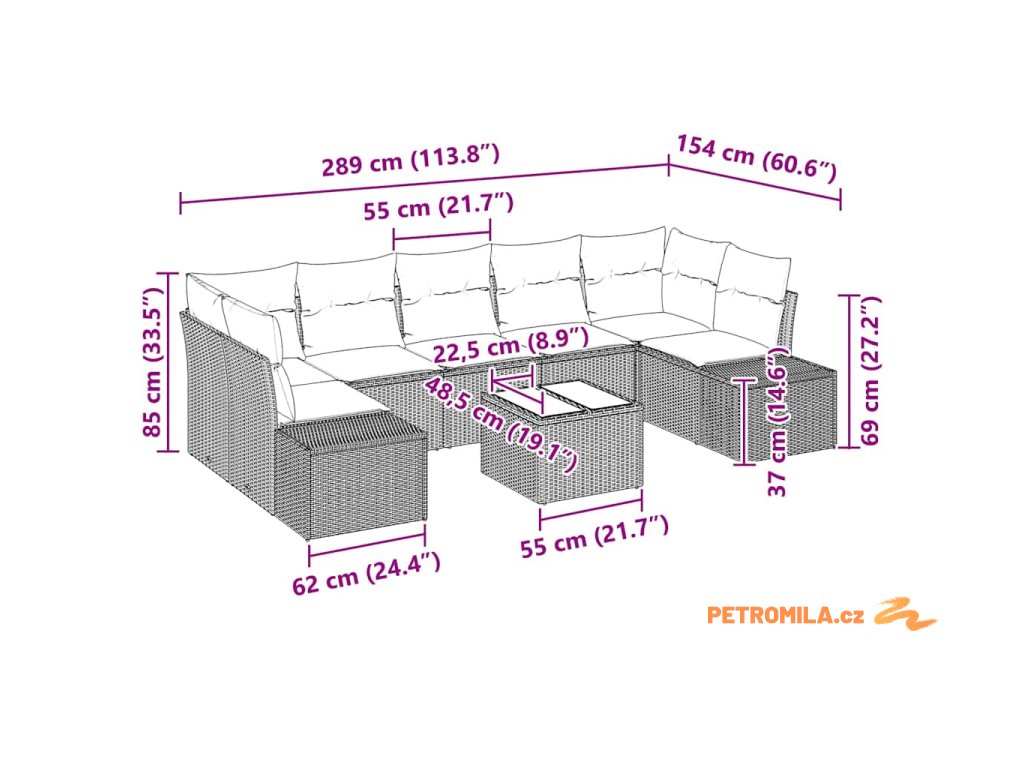 Tahle moderní zahradní pohovková souprava spojuje funkčnost s jednoduchostí a styl, který má rád čisté linie a málo zdobení. Je ideální pro zahradu nebo terasu a nabízí pohodlné místo pro venkovní setkání nebo klidné chvíle o samotě. Díky své flexibilitě se hodí do různých venkovních prostředí a snadno se přizpůsobí různým velikostem a uspořádáním díky modulárním komponentům.