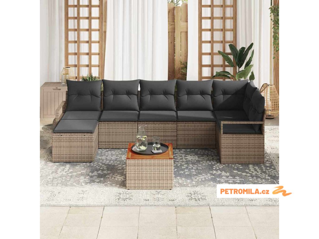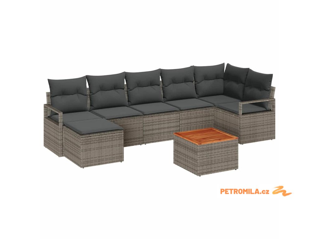 Sada zahradních pohovek s polštářem 8 pcs Šedá polyratan