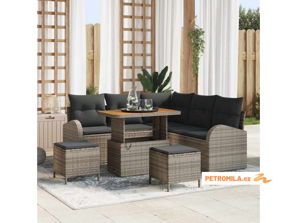 Sada zahradních pohovek s polštářem 8 pcs Šedá polyratan