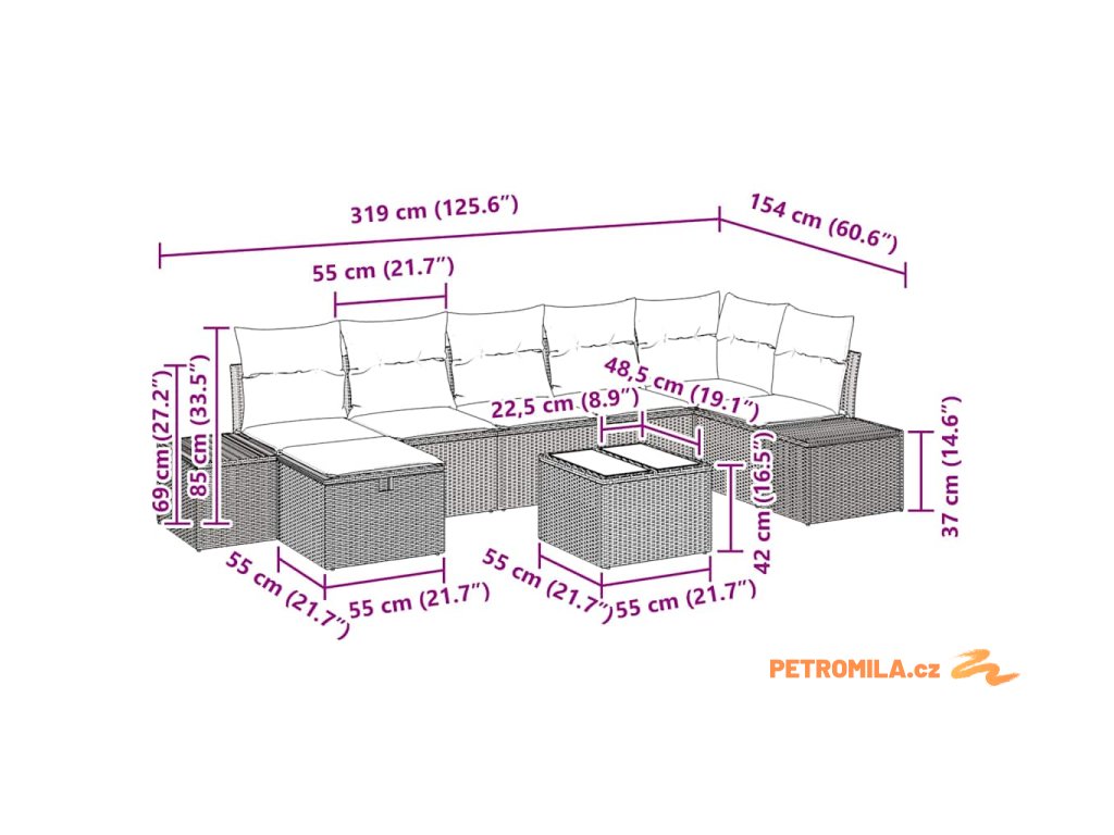 Sada zahradních pohovek s polštářem 8 pcs Béžová Poly ratan