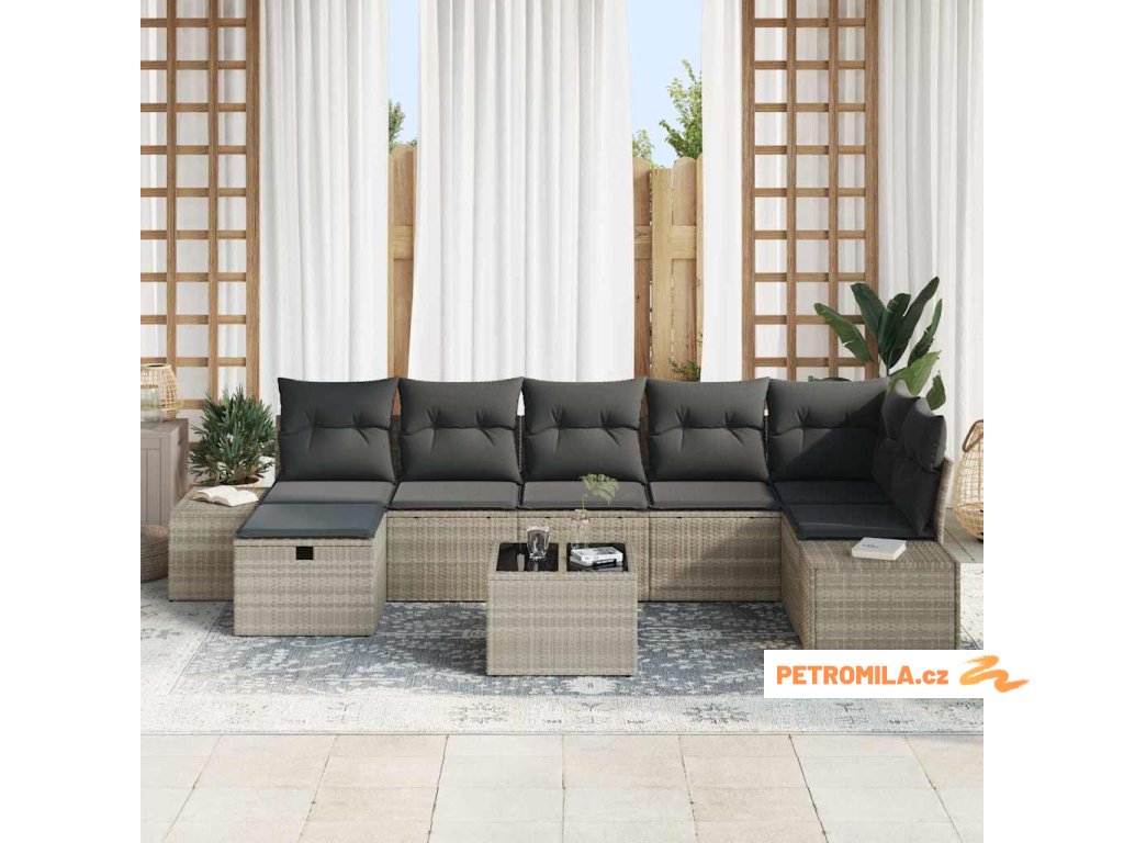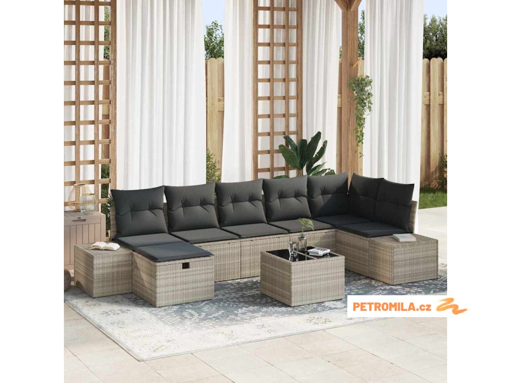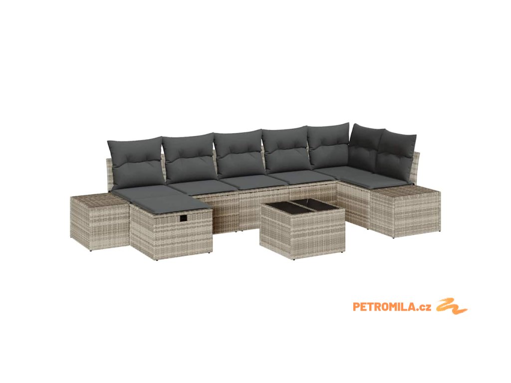 Sada zahradních pohovek s polštářem 8 pcs Světle šedá polyratan