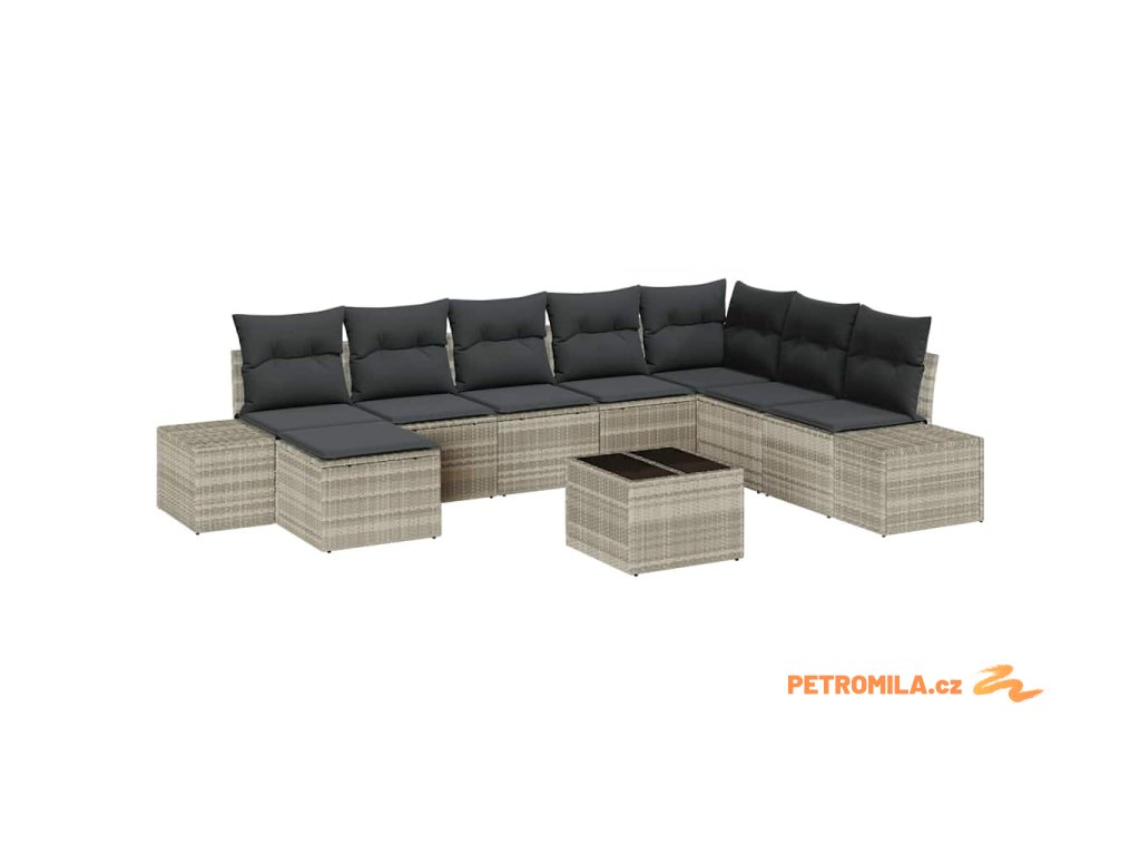 Sada zahradních pohovek s polštářem 8 pcs Světle šedá polyratan
