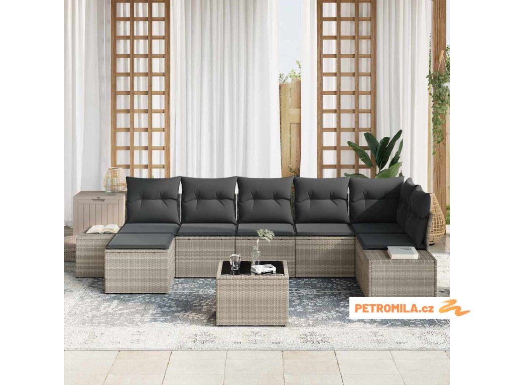Sada zahradních pohovek s polštářem 8 pcs Světle šedá polyratan