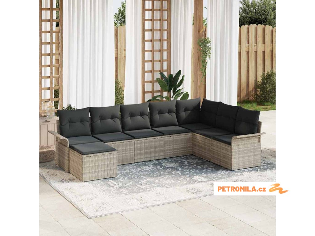 Sada zahradních pohovek s polštářem 8 pcs Světle šedá polyratan