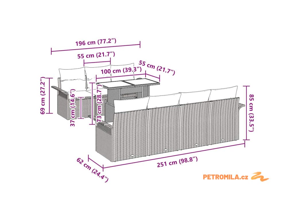 - 3 x Střední sedák: 55 x 62 x 69 cm (ŠxHxV)