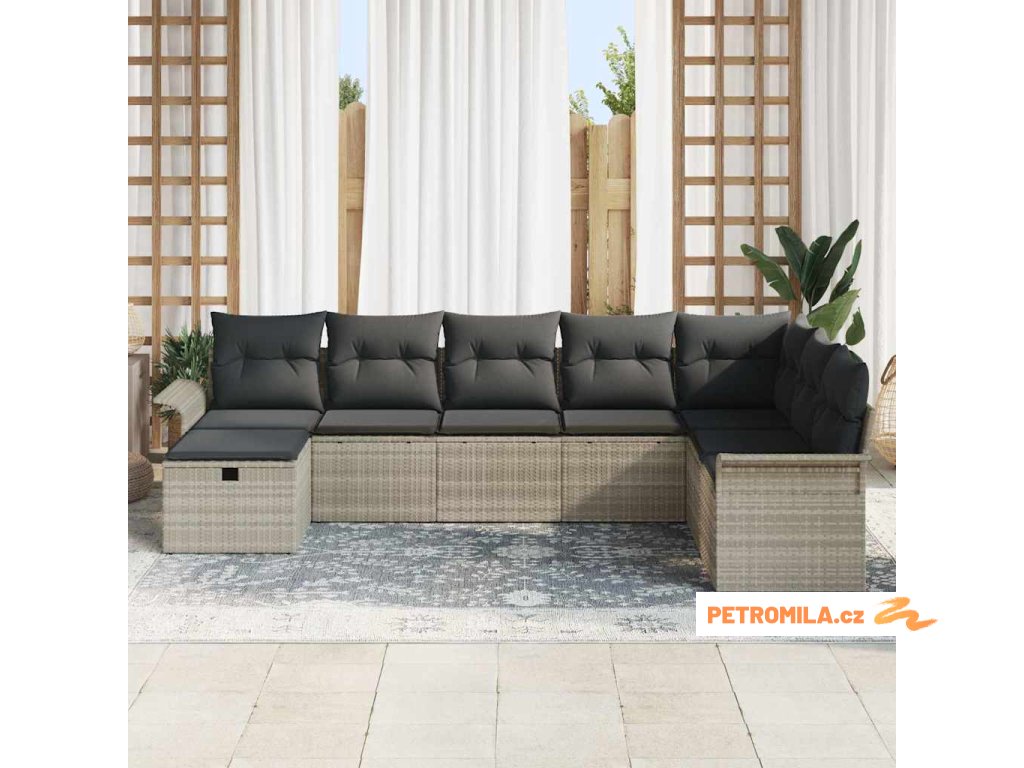 Sada zahradních pohovek s polštářem 8 pcs Světle šedá polyratan