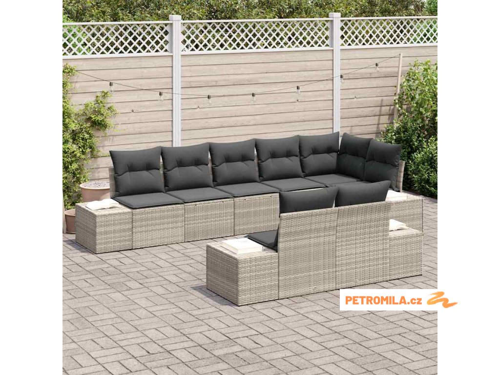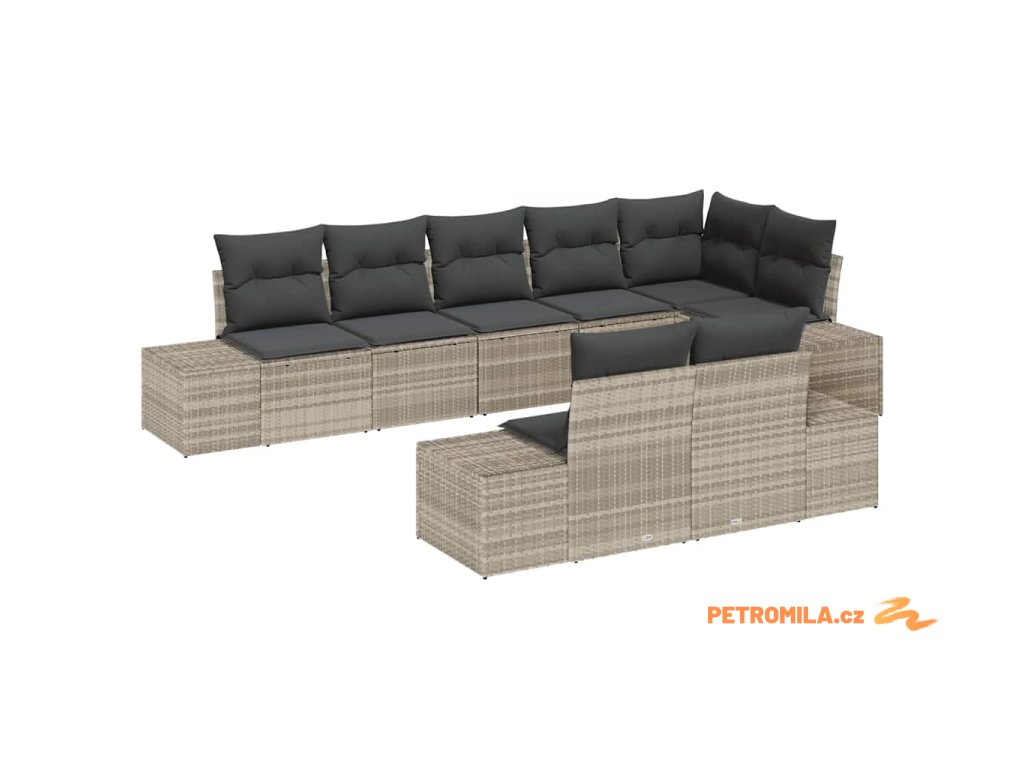Sada zahradních pohovek s polštářem 8 pcs Světle šedá polyratan
