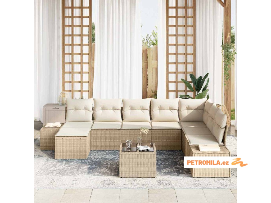 Sada zahradních pohovek s polštářem 9 pcs béžová a krémová