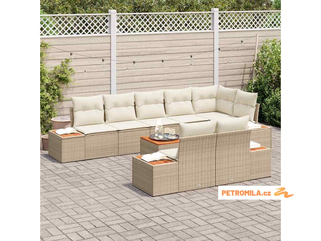 Sada zahradních pohovek s polštářem 9 pcs béžová a krémová