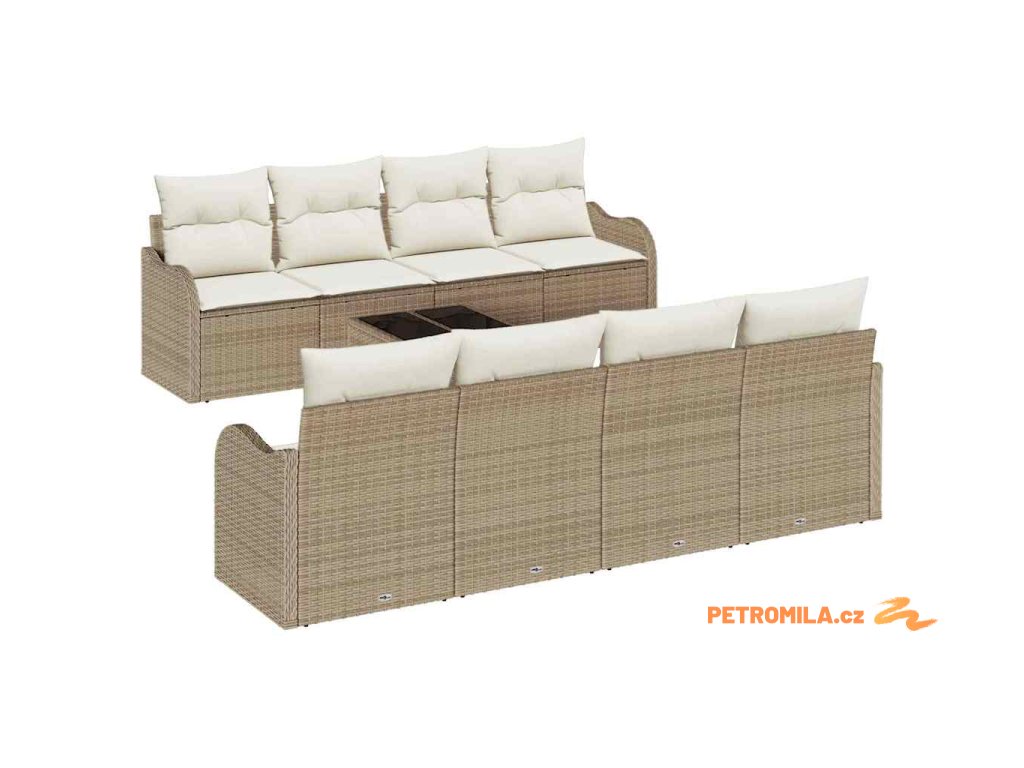 Sada zahradních pohovek s polštářem 9 pcs Béžová a krémová